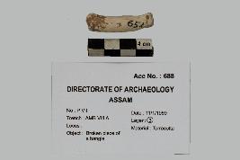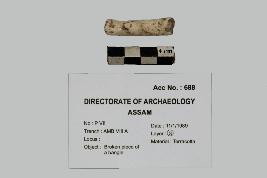 | Description / विवरण | This is a broken fragment of a bangle made of Kaolin clay. The fragment is devoid of any decorations. |