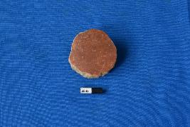 | Description / विवरण | Hopscotch of terracotta with a red slip and unfinished edges. It is prepared out of a potsherd. |