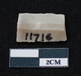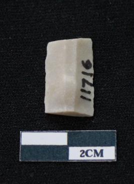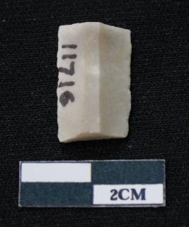 | Description / विवरण | Fragment of blade is white in color, having smooth body, both ends broken, sides are retouched, ridges on the top and triangular section. |