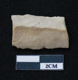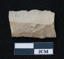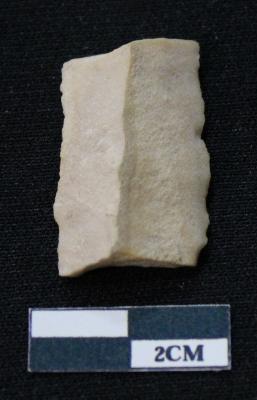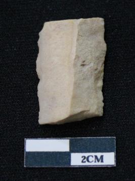 | Description / विवरण | Fragment of blade is off white in color, having both ends broken, sides are retouched, mid ridge on the top and triangular section. |