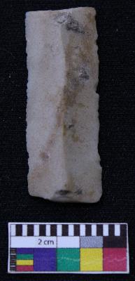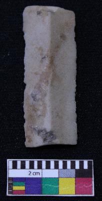 | Description / विवरण | Fragment of blade is having broken ends, retouched sides, mid ridge on the top and triangular section. |