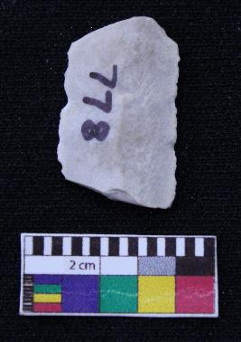 | Description / विवरण | Fragment of blade is white in color, having broken ends, retouched sides, mid ridge on the top and thin section. |
