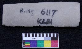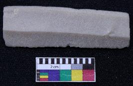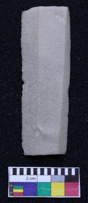 | Description / विवरण | Fragment of blade is off white in color, having broken ends, retouched sides, ridges on the top and triangular section. |