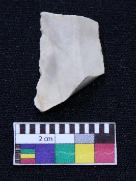 | Description / विवरण | Fragment of blade is white in color, having smooth body, broken ends, retouched sides and mid ridge on the top. |