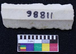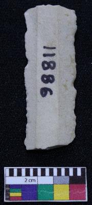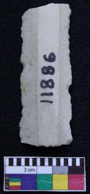 | Description / विवरण | Fragment of blade is off white in color, having broken ends, retouched parallel sides and ridges on the top. |