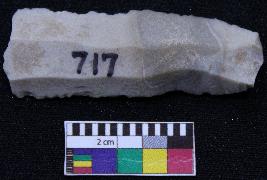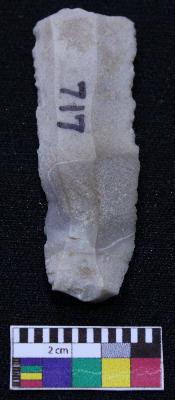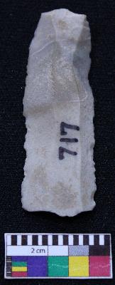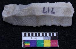 | Description / विवरण | Fragment of blade is off white in color, having positive bulb at one end, other end is broken, retouched sides and ridges on the top. |