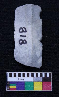 | Description / विवरण | Fragment of blade is partly grey and whitish in color, having broken ends, retouched sides, mid ridge on the top and triangular section. |