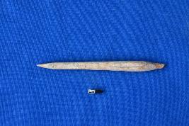 | Description / विवरण | A well finished intact point of ivory in white colour, tapering at one end and broad on the other from where it was hafted. |