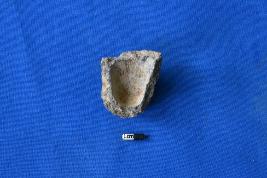 | Description / विवरण | A fragment of a used terracotta crucible which is vitrified from the outside and has iron stains on its inside. |