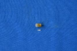 | Description / विवरण | A cylindrical shaped bead of carnelian in yellow and white colour with a smooth surface and perforation at the center. |