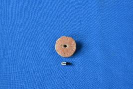 | Description / विवरण | A terracotta spindle whorl with fairly finished edges and a hole in the middle. The fabric used is red slipped ware. |