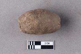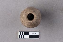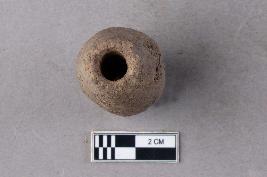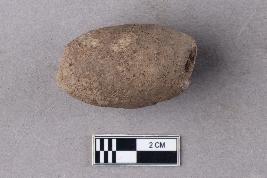 | Description / विवरण | An irregularly long barrel-shaped terracotta bead with central perforation. It appears to be handmade with slightly gritty clay. |