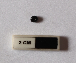 | Description / विवरण | Glass bead in a circular shape. It is black in color |