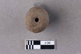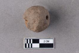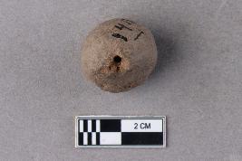 | Description / विवरण | An almost spherical bead of terracotta with a central perforation. It is red in colour. |