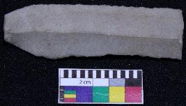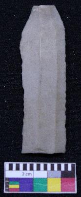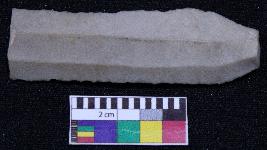 | Description / विवरण | Fragment of blade is having positive bulb of percussion at one end, other end is broken, retouched parallel sides, mid ridge on the top and thin section. |