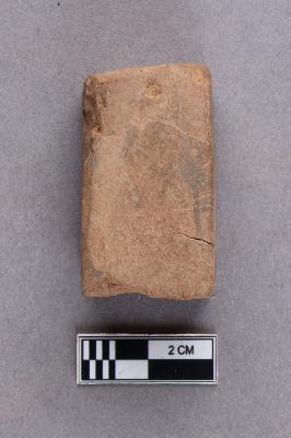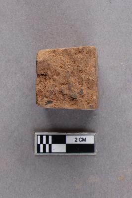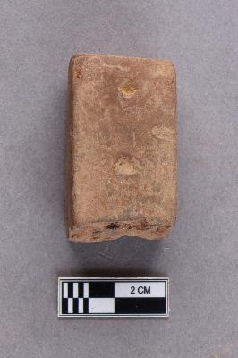 | Description / विवरण | An unevenly cuboidal block of terracotta dice, which is broken. There are false perforations on each surface. The surfaces are smooth. |