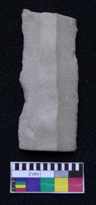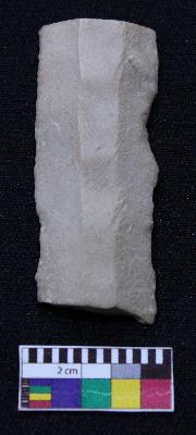 | Description / विवरण | Fragment of blade is having both ends broken, retouched sides and ridges on the top. |