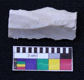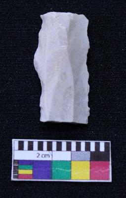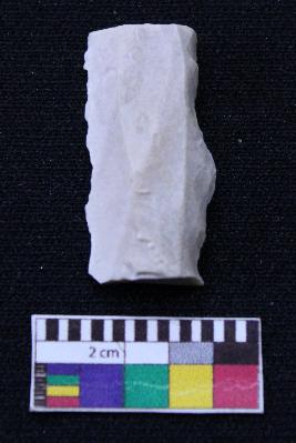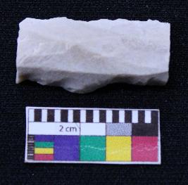 | Description / विवरण | Fragment of blade is white in color, having broken ends, retouched sides and ridges on the top. |