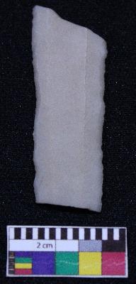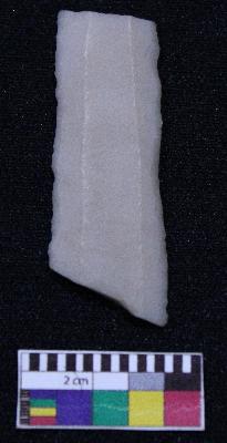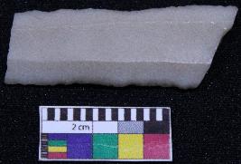 | Description / विवरण | Fragment of blade is white in color, having broken ends, retouched sides, ridges on the top and thin section. |