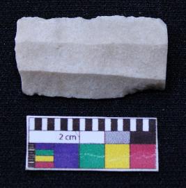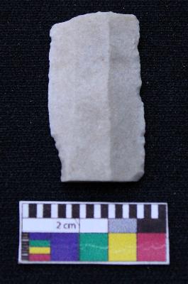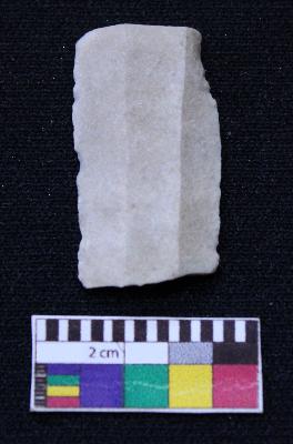 | Description / विवरण | Fragment of blade is white in color, having broken ends, retouched sides and ridges on the top. |