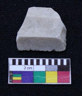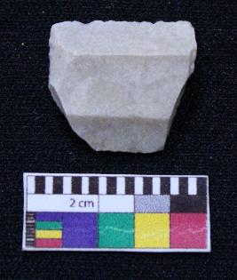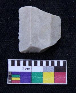 | Description / विवरण | Fragment of blade is white in color, having both ends broken, retouched sides and ridges on the top. |