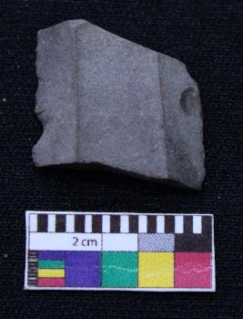 | Description / विवरण | Fragment of blade is blackish in color, having both ends broken, retouched parallel sides and ridges on the top. |