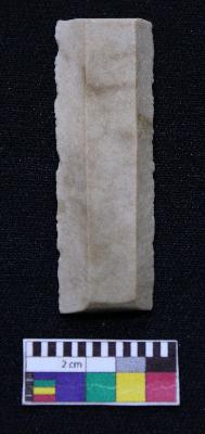 | Description / विवरण | Fragment of blade is dull brown in color, having both ends broken, retouched parallel sides and ridges on the top. |