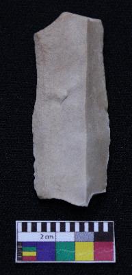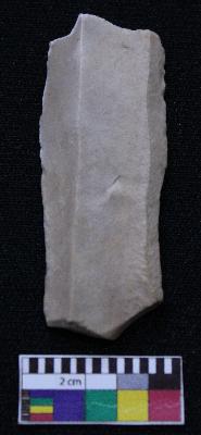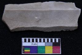 | Description / विवरण | Fragment of blade is off white in color, having both ends broken, retouched sides, ridges on the top and thin section.. |