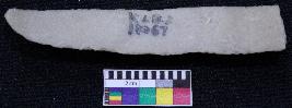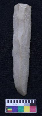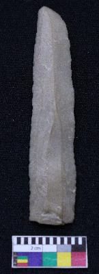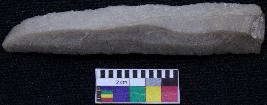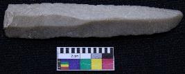 | Description / विवरण | Fragment of blade is dull brown in color, having one end broken, other end is pointed, retouched sides, mid ridge on the top and triangular section. |