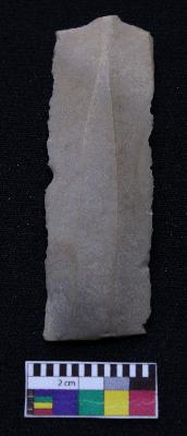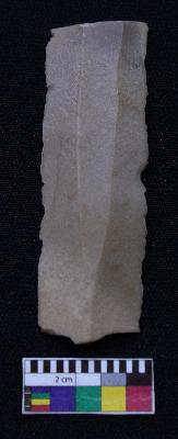 | Description / विवरण | Fragment of blade is brown in color, having broken ends ,retouched parallel sides, ridges on the top and triangular section |