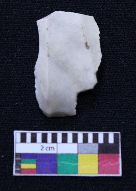 | Description / विवरण | Fragment of blade is white in color, having both end broken, retouched sides, ridges on the top and thin section. |