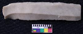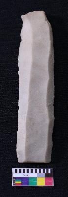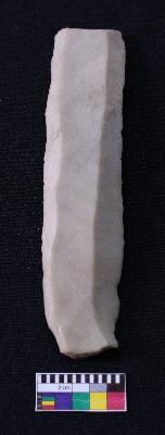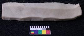 | Description / विवरण | Fragment of blade is off white in color, having positive bulb of percussion at one end, other end is broken, retouched sides and ridges on the top. |