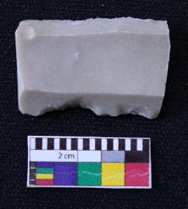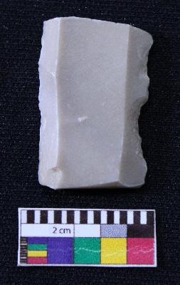 | Description / विवरण | Fragment of blade is off white in color, having smooth body, broken ends, retouched sides and ridges on the top. |