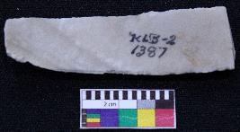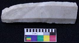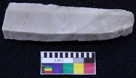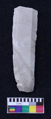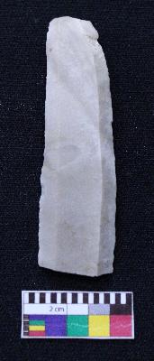 | Description / विवरण | Fragment of blade is dull brown in color, having smooth body, one end broken, retouched sides and ridges on the top. |