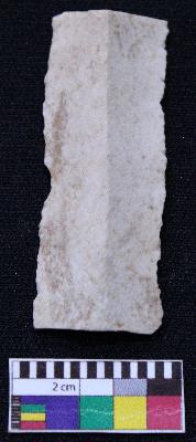 | Description / विवरण | Fragment of blade is off white in color, having broken ends, retouched parallel sides, mid ridge on the top and triangular section. |