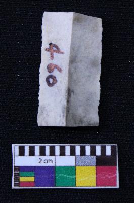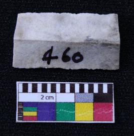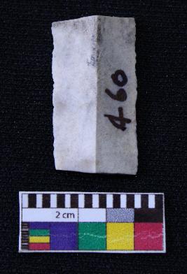 | Description / विवरण | Fragment of blade is white in color, having broken ends, retouched parallel sides, mid ridge on the top and triangular section. |