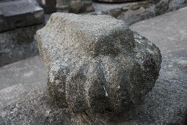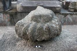 | Description / विवरण | This is an architectural part of the temple. This is segmented into two parts. The upper part is square in one piece and extended into an elongated shape in another part. The lower part is round on one side, has ridges on edge, and extends into an elongated shape. |