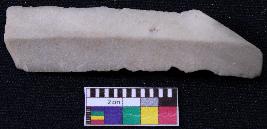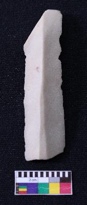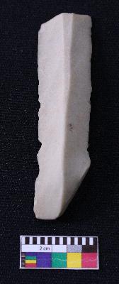 | Description / विवरण | Fragment of blade is off white in color, having broken ends, retouched sides, mid ridge on the top and triangular section. |