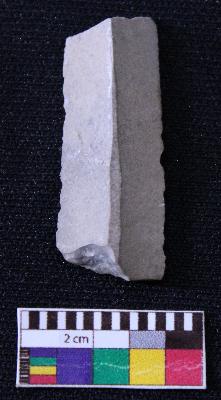 | Description / विवरण | Fragment of blade is black in color, having broken ends, retouched parallel sides, mid ridge on the top and triangular section. |