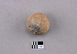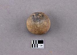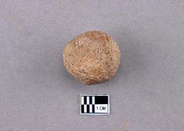 | Description / विवरण | A small sphere of terracotta with one flattened edge. It is reddish in colour and shows a small black burnt patch on the surface. |
