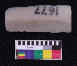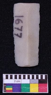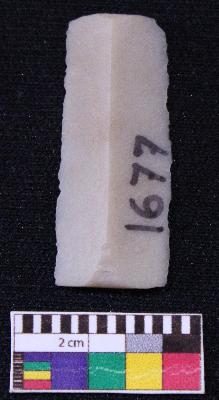 | Description / विवरण | Fragment of blade is having one end broken, retouched parallel sides, mid ridge on the top and triangular section. |