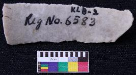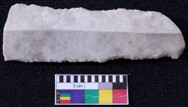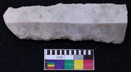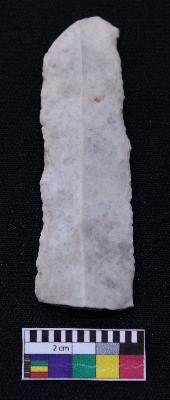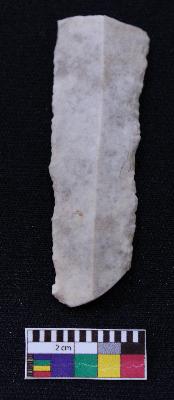 | Description / विवरण | Fragment of blade is off white in color, having broken ends, retouched sides, mid ridge on the top and triangular section. |