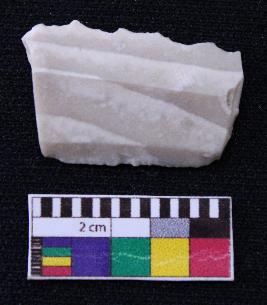 | Description / विवरण | Fragment of blade is off white in color, having broken ends, retouched sides, mid ridge on the top and triangular section. |