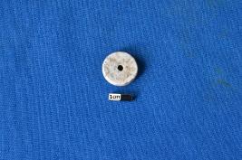 | Description / विवरण | A disc shaped bead of shell in white colour with a smooth surface and perforation at the center. |