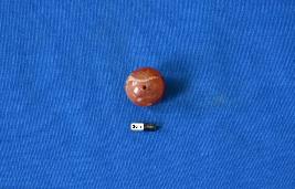 | Description / विवरण | A spherical shaped bead of carnelian with a smooth surface and a perforation at the center. |