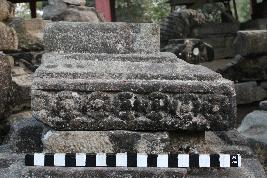 | Description / विवरण | This is an architectural element which consist of two parts, where the upper part is void of any decoration. From it below two steps like design is extended. At the lower part on the edge, there are seven blooming flowers carved in horizontal flat surface. |