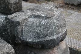 | Description / विवरण | This is a semi-spherical architectural fragment which is consist of two parts. The upper part is slightly carved inward without any decoration. The lower part is carved out with decorative edges. The back of the sphere is rectangular in shape and a semi-circular edge is extending from the upper part. |