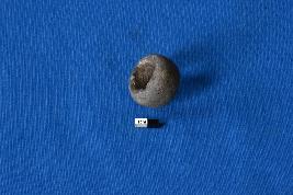 | Description / विवरण | A circular shaped bead of terracotta with a wide perforation at the center and cross-section is thick at the top and narrows down at the bottom, it is black in colour and has a smooth surface. |
