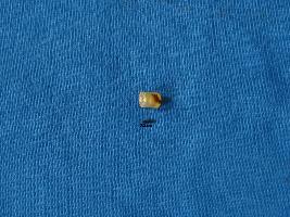 | Description / विवरण | Cylindrical shaped bead of carnelian in yellow colour with a black impurity in the formation of the stone, a smooth surface and perforation at the center. |