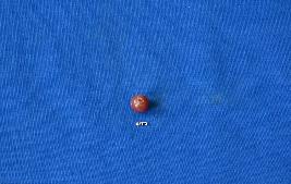 | Description / विवरण | A spherical shaped bead of carnelian in red colour with a smooth surface and perforation at the center. |